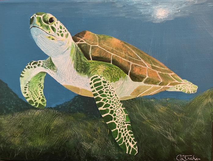 The Green Sea Turtle’s range is tropical and subtropical seas around the world. The name refers to the green fat beneath its carapace due to its diet, not its color. They inhabit shallow lagoons, feeding on seagrasses. The turtles bite off the tips of the blades of seagrass, which keeps the grass healthy. Like other sea turtles, they migrate long distances between feeding grounds and hatching beaches. They live up to 90 years in the wild.